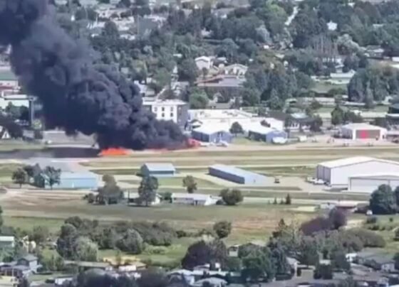 A small passenger plane crashed into a parked aircraft while attempting to land at Kalispell City Airport in Montana on…